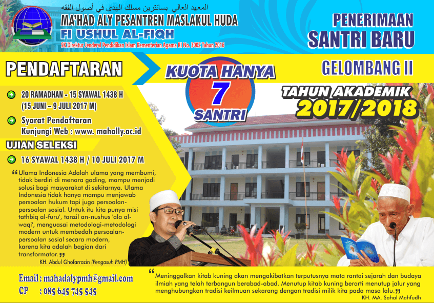 PENERIMAAN SANTRI BARU MA’HAD ALY PESANTREN MASLAKUL HUDA TAHUN 2017 GELOMBANG II