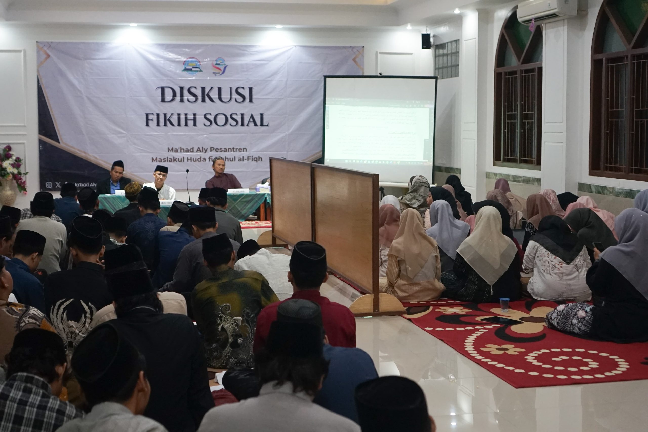 Diskusi fikih sosial yang diselenggarakan oleh Departemen Sumber Daya Manusia Himpunan Santri Ma’had Aly Pesantren Maslakul Huda sukses terlaksana pada Rabu malam (15/1) di auditorium Pesantren Maslakul Huda. Kegiatan diskusi yang rutin diselenggarakan tiap semester itu diikuti oleh segenap santri banin dan banat Ma’had Aly Pesantren Maslakul Huda. Delegasi dari IPMAFA (Institut Pesantren Mathali’ul Falah), UNISSULA, dan UIN Walisongo turut hadir sebagai peserta diskusi pada malam itu. Pada diskusi kali ini, Respons Fikih Sosial Terhadap Pernikahan Dini menjadi tema pembahasan.